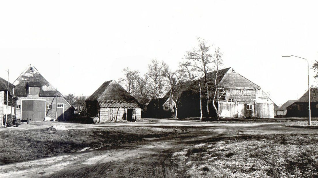 De erven Eltinge II (links) en Eltinge III, gebouwd in 1763 (rechts), gescheiden door de Boerstege, tegenwoordig Zevenhoeksweg 6 en 1. Foto: Gerrit Oosterveen, 1967